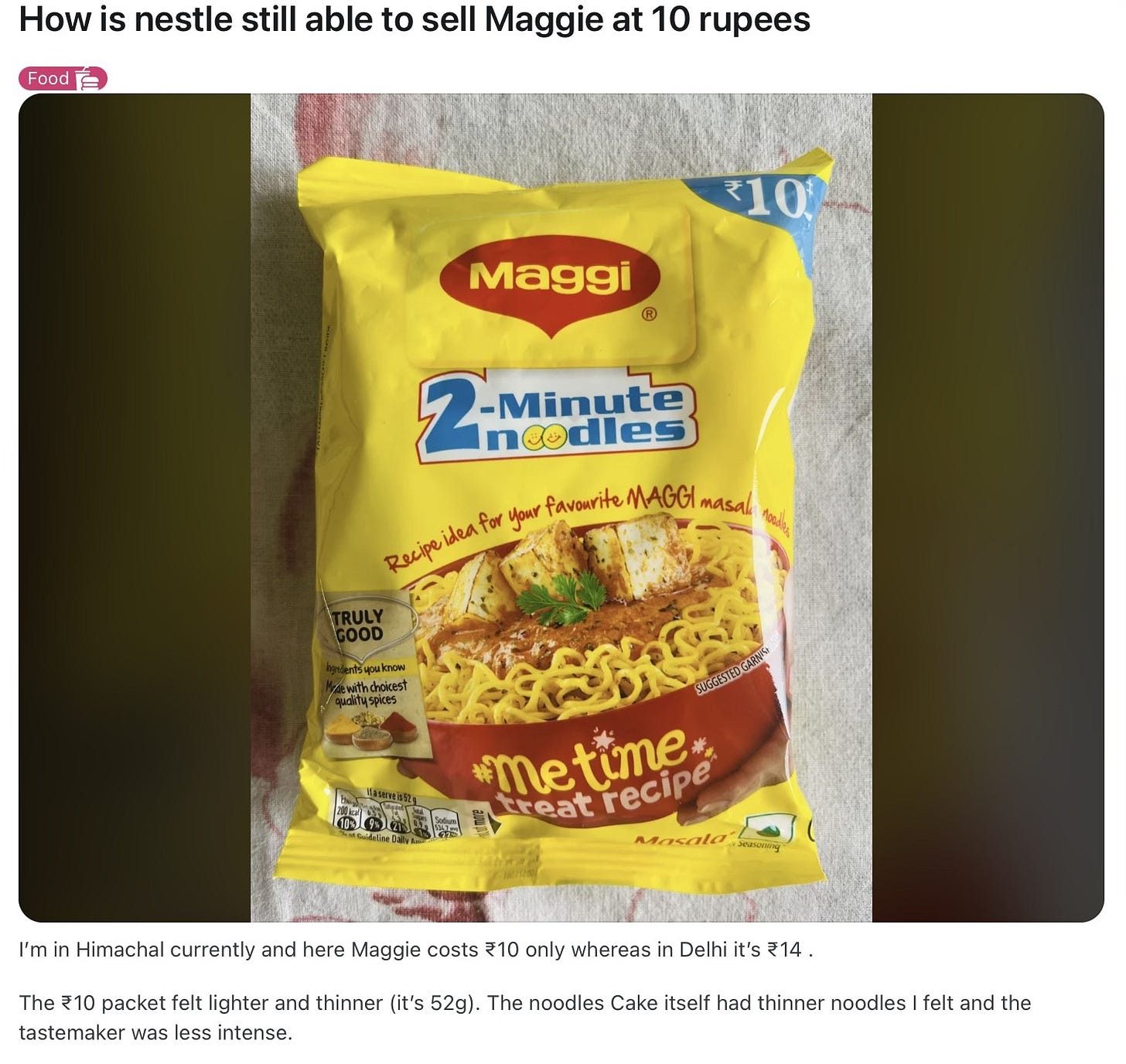 As a result, brands like Maggi are forced to shrinkflate.